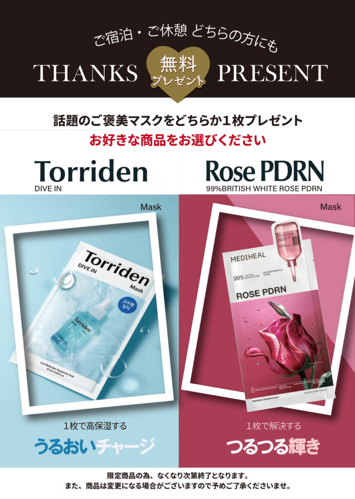 韓国で人気のフェイスマスクをプレゼント! 2025.11.20 お知らせ 韓国コスメで大人気のトリデン、メディヒールそれぞれのフェイスマスクを来店されたお客様へプレゼント致します。※無くなり次第終了となりますので、予めご了承ください。 一覧へ 前へ